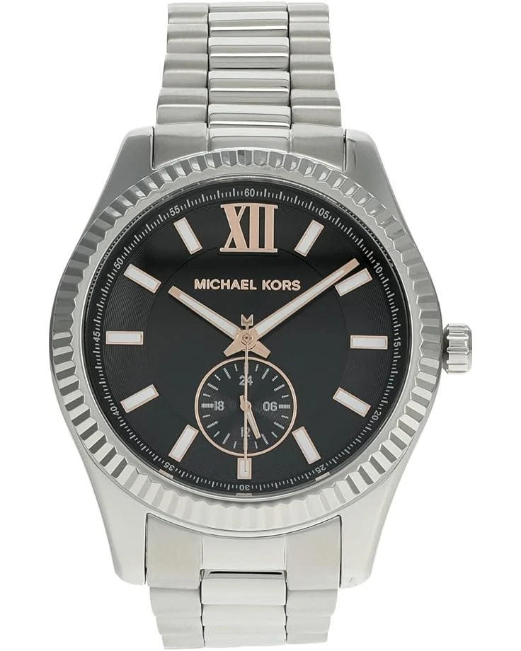 Add the Michael Korsยฎ MK8946 – Lexington Multifunction Stainless Steel Bracelet Watch to your collection. It comes with a contrasting color dial.SKU: #9725097Stainless steel case with round silver tone construction.Deployment clasp closure with push buttons.Mineral crystal.Brand logo on the dial.Metal bracelet strap.Water-resistant up to 100 meters.Imported.This product may have a manufacturer’s warranty. Please visit the manufacturer’s website or contact us at [email protected] for full manufacturer warranty details.Measurements: