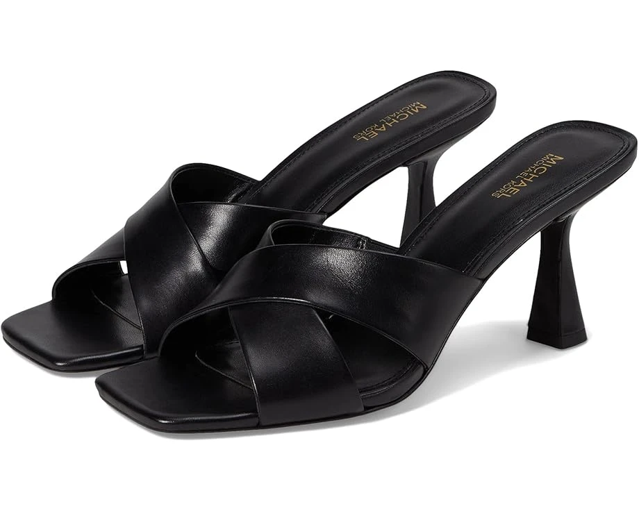 Enhancing your look with a posh appearance, the MICHAEL Michael Kors® Clara Mule Heels showcases a criss-cross strappy design.SKU: #9868394PU upper with straps.PU lining and synthetic insole.Slip-on style.Open square toe.Rubber outsole.Imported.Product measurements were taken using size 7, width M. Please note that measurements may vary by size.Measurements: