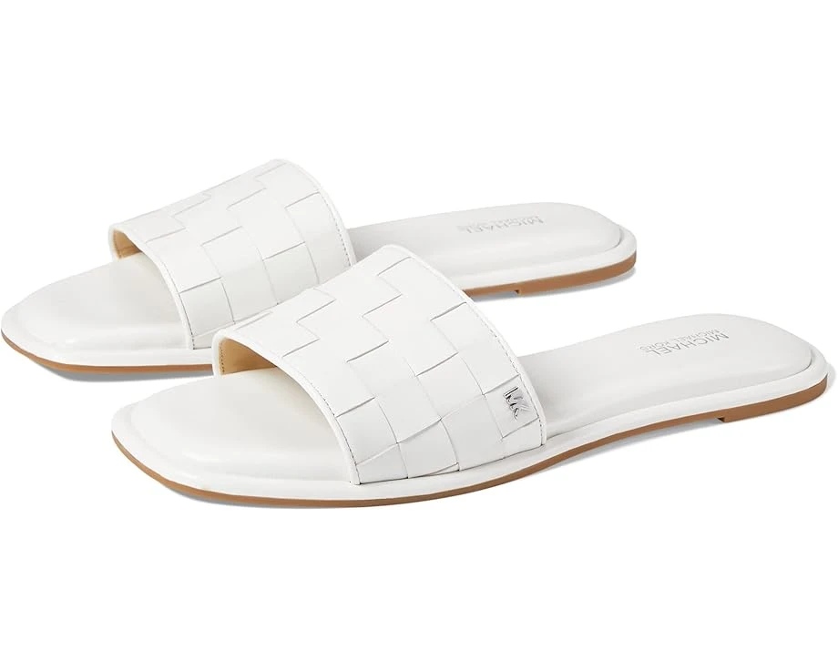 Complement your cool and comfy warm weather style wearing the MICHAEL Michael Kors® Hayworth Slide Sandals.SKU: #9739248Synthetic upper, lining, and insole.Slip-on style for easy on/off.Open square toe.Ombré effect with logo detailing.Synthetic outsole.Imported.Product measurements were taken using size 9, width M. Please note that measurements may vary by size.Measurements: