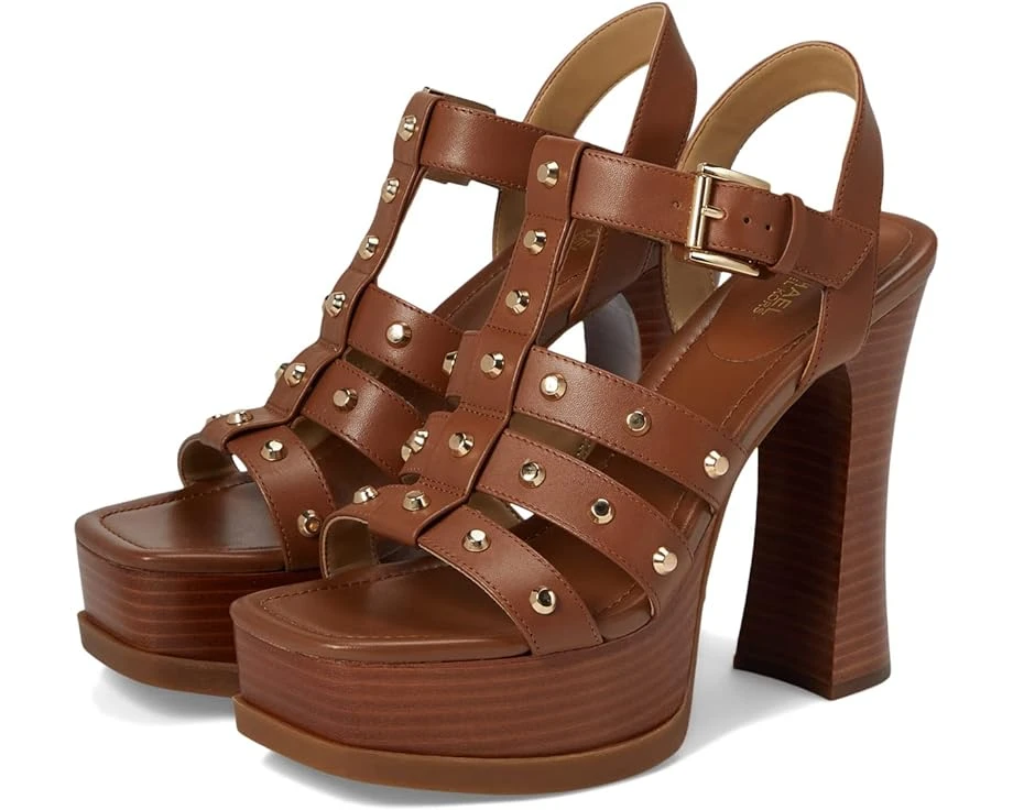 Boost up your style and attitude wearing the MICHAEL Michael Kors® Jagger Platform Sandal. SKU: #9893502Leather upper.Polyurethane blend lining and synthetic footbed.Buckled closure.Stud detailing on the straps.Open round toe design.Stacked heel.Rubber outsole.Imported.Product measurements were taken using size 7, width M. Please note that measurements may vary by size.Measurements: