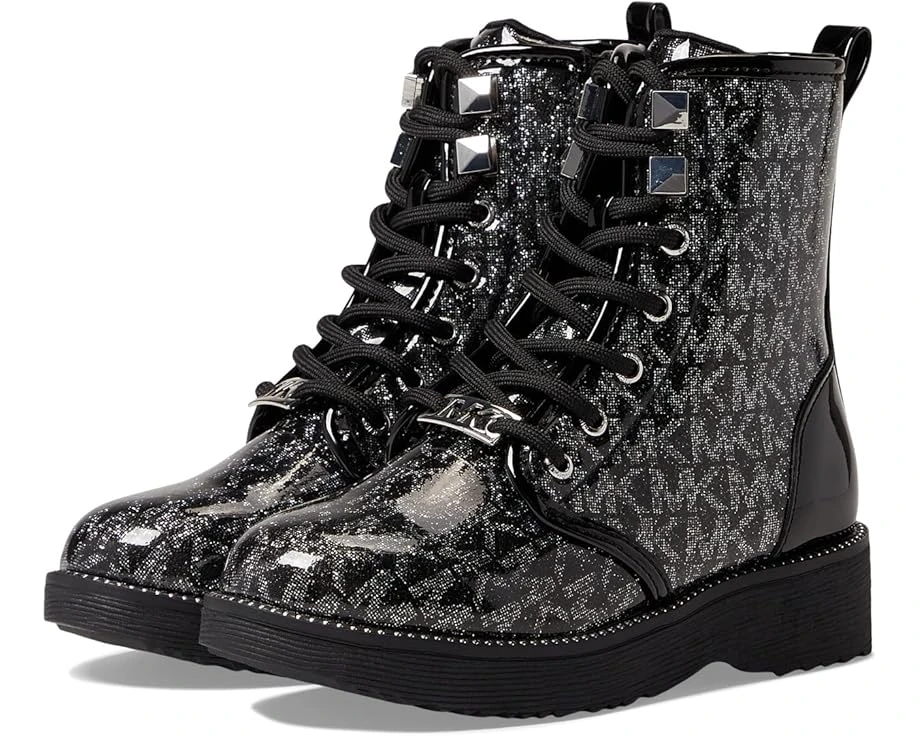 MICHAEL Michael Kors® Kids Haskell Syre boots feature allover branding detail for a chic look and offer comfort with their cushioned insole.SKU: #9732171Polyurethane upper.Synthetic lining and insole.Zippered side closure with lace panels on the upper.Round toe.Platform heel design.Pull tab on the back.Synthetic outsole.Imported.Product measurements were taken using size 11 Little Kid, width M. Please note that measurements may vary by size.Measurements: