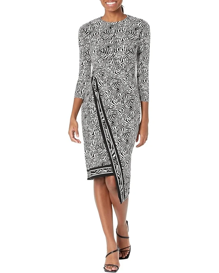 Create a glamorous presence by posing a stunning look in the MICHAEL Michael Kors® Petite Zebra Asymmetrical Border Midi Dress.SKU: #9866614Knee-length dress.
