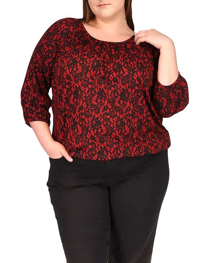 Dress in a laidback yet sophisticated and luxurious look wearing the MICHAEL Michael Kors® Plus Size Lovely Lace Peasant Top.