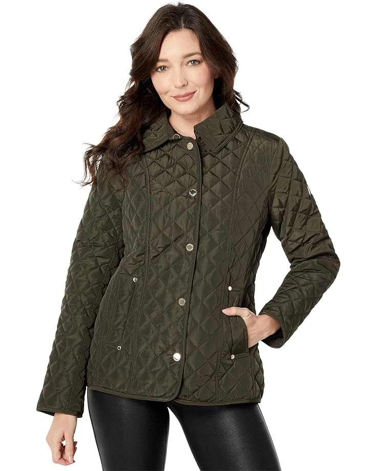 Stay stylish in warmth with MICHAEL Michael Kors® Snap Front Barn Quilt M423599F47.SKU: #9802299Folded mock collar.Long sleeves.Center front snap-button closure.Lower front welt pockets.Quilted design.Straight hemline.100% polyester.Machine wash, line dry.Imported.Product measurements were taken using size SM. Please note that measurements may vary by size.Measurements: